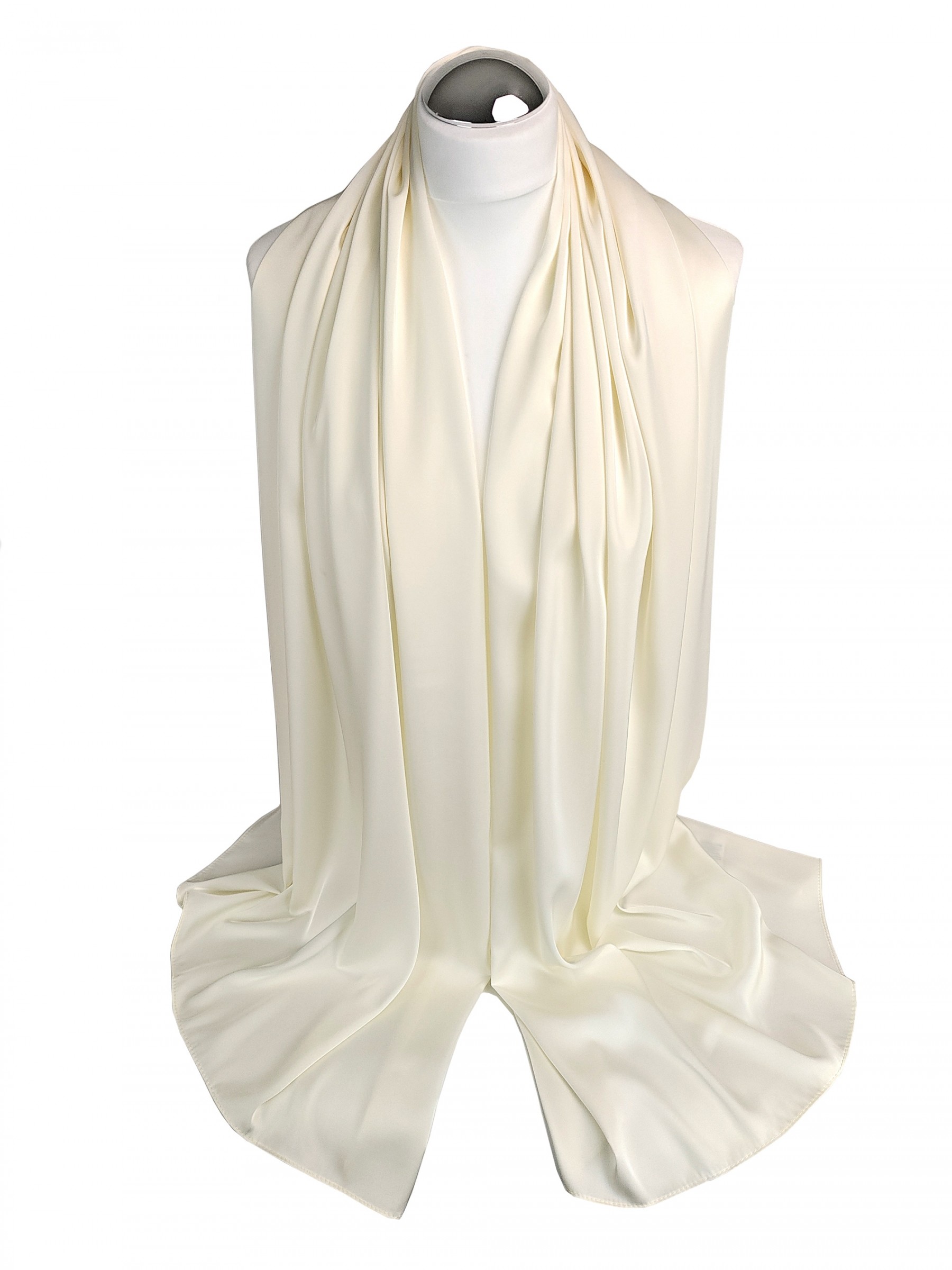 Szal do sukienki satynowy długi ecru