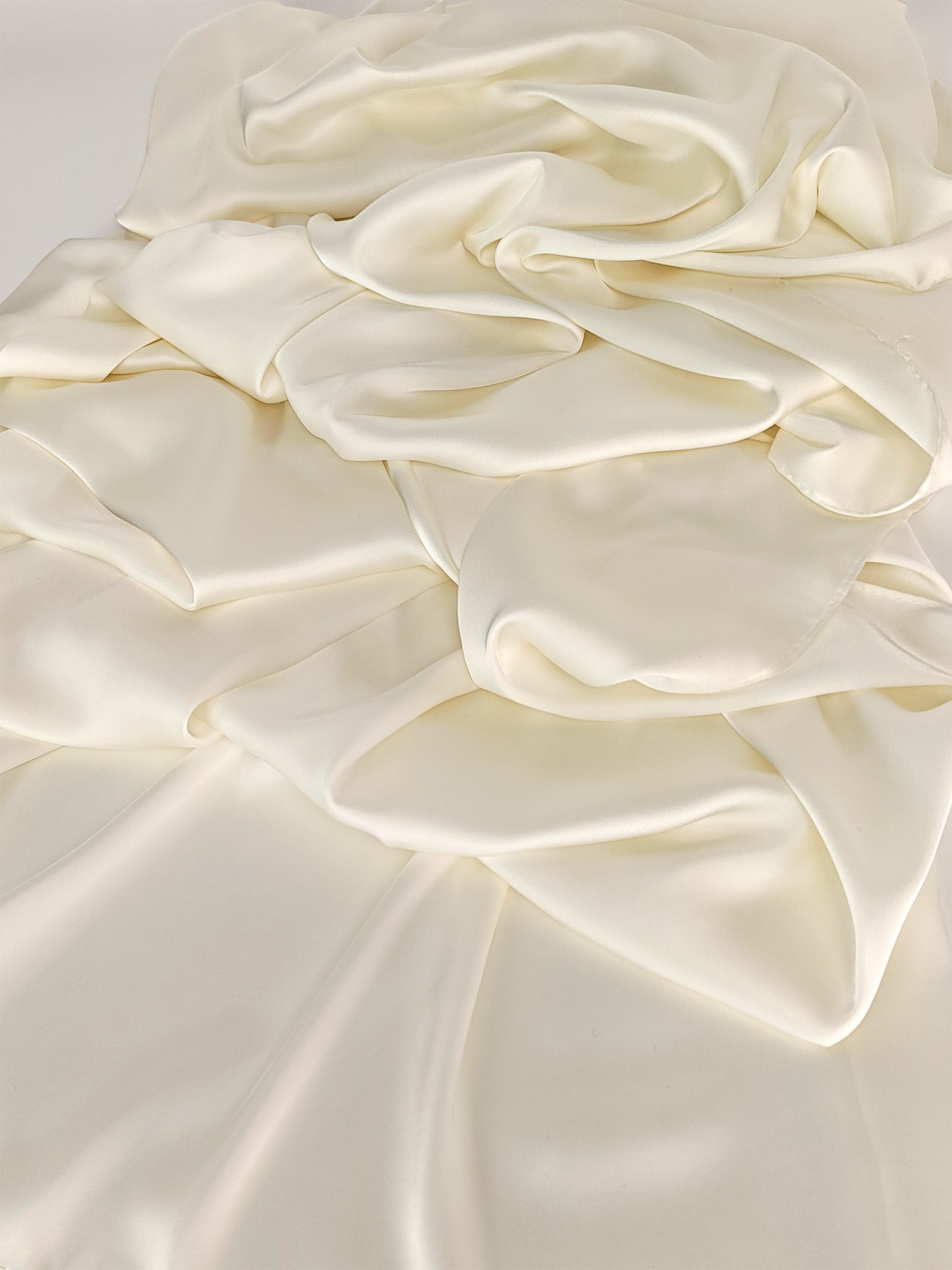 Jedwabiście gładka w dotyku satyna jest zupełnie nieprzezroczysta, pozwala zakryć ramiona i dekolt, jednocześnie chroniąc przed chłodem.